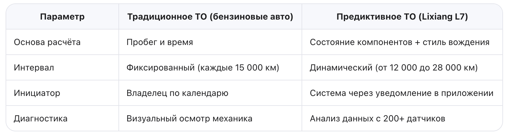 В Lixiang L7 нет «планового ТО каждые 15 000 км». Вместо этого система отслеживает: